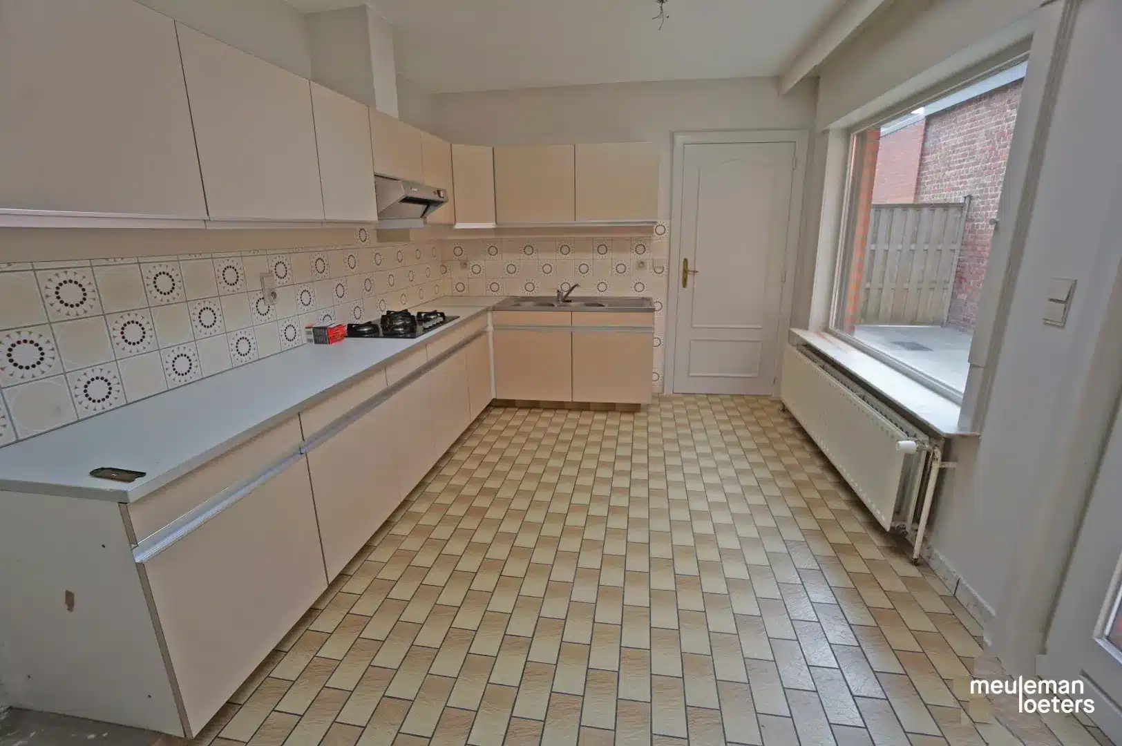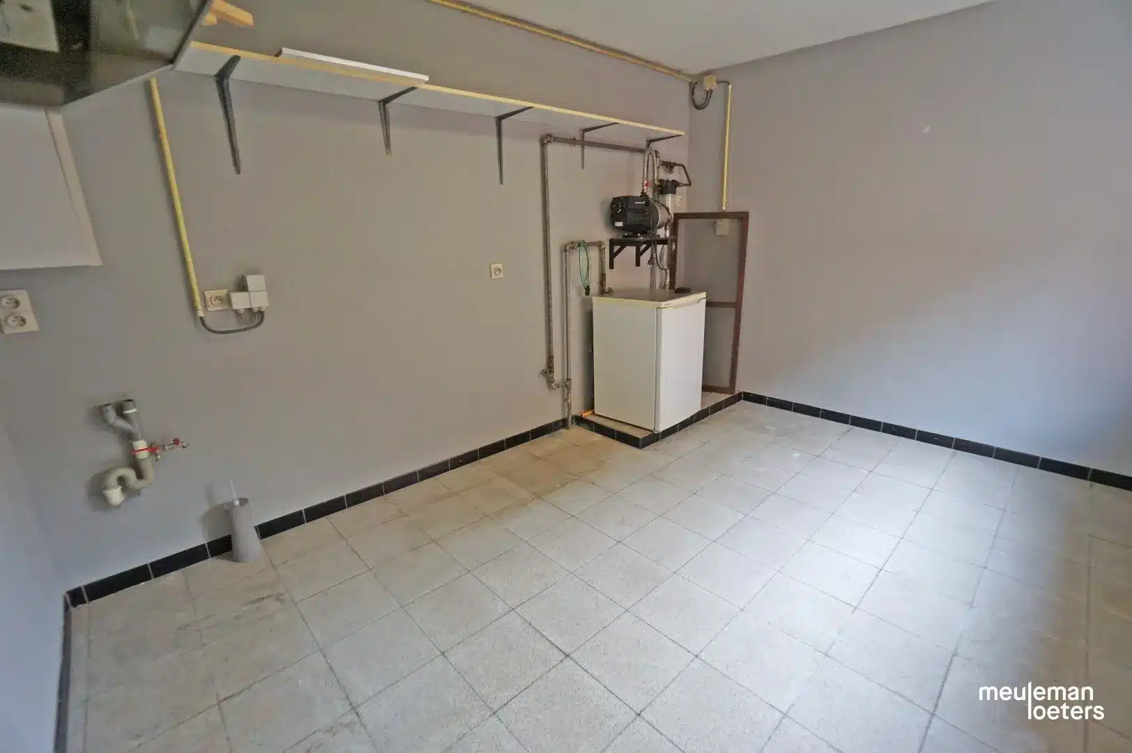 Deze woning is op de gelijkvloerse verdieping voorzien van een inkomhal, een toilet, een vestiaire, een ruime lichtrijke leefruimte met eet- en zit mogelijkheid, een ruime keuken die voorzien is van een gasfornuis, een dampkap, een dubbele spoelbak en koelkast), CV-berging annex wasplaats.