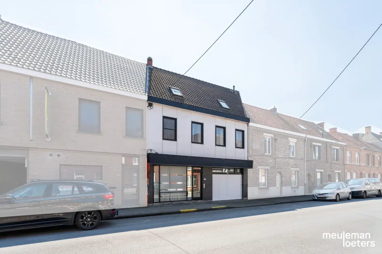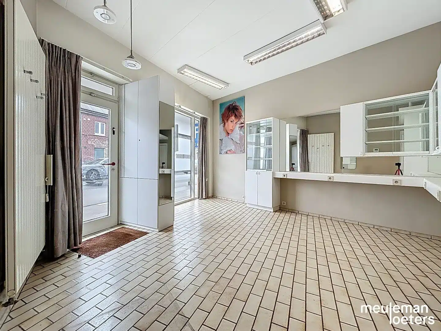 De woning is zowel toegankelijk via het handelsgedeelte vooraan wat gebruikt kan worden als nagelstudio, kapperszaak, barbier, bureau voor een vrij beroep,……als via de ruime garage met schuifpoort, waarin de toegangsdeur zit verwerkt.